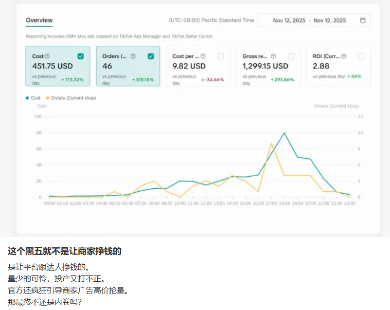 在社媒上,就有卖家吐槽旺季初期流量不及预期,即使砸钱投广、硬拉流量,转化效率也十分低迷,反复折腾反而加重了成本负担。