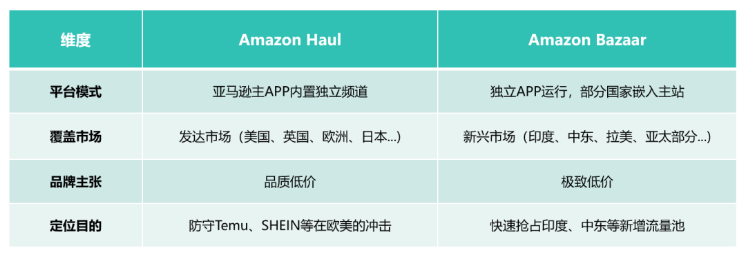 Bazaar并非凭空冒出,它跟去年亚马逊在部分市场试水的低价商城Amazon Haul算是一脉相承,说白了就是低价战略的2.0升级版。