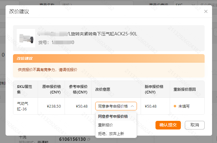 其实卖家不用过于担心,有的改价建议是由系统自动识别发出。建议卖家不要着急地直接点确认,要做多方面考量,自查均价不高于同类产品,大胆拒绝或者后台反馈跟价不准即可。