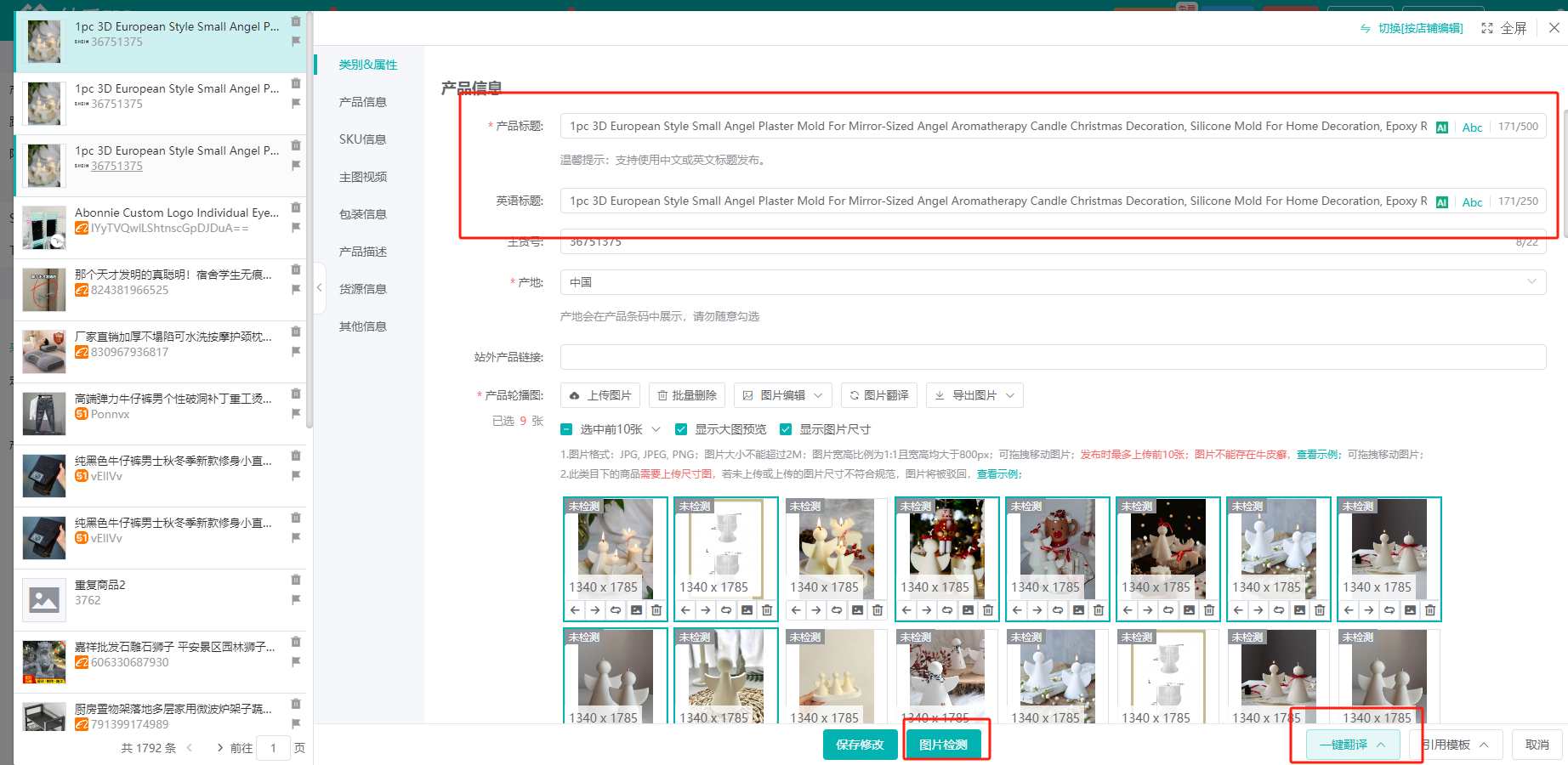 上架前可使用妙手ERP智能AI生成优质的产品LIsitng、检测产品图是否符合平台规范、自动SKU规格映射、图文翻译等,快速打造高质量产品。