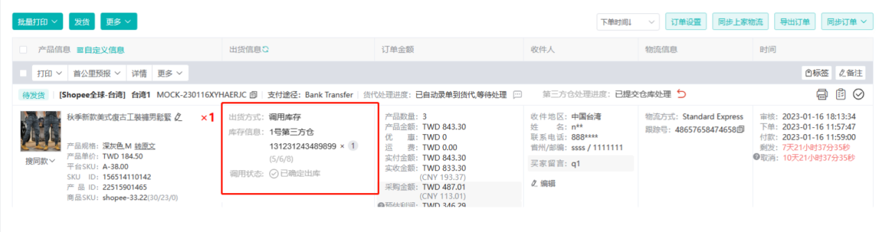 完成调用后,在“出货信息”列内会显示调用信息,第三方海外仓方也会同步收到推送需求,不需要你再前往海外仓系统操作。