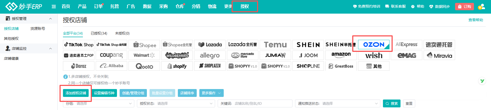 第一步:授权Ozon店铺