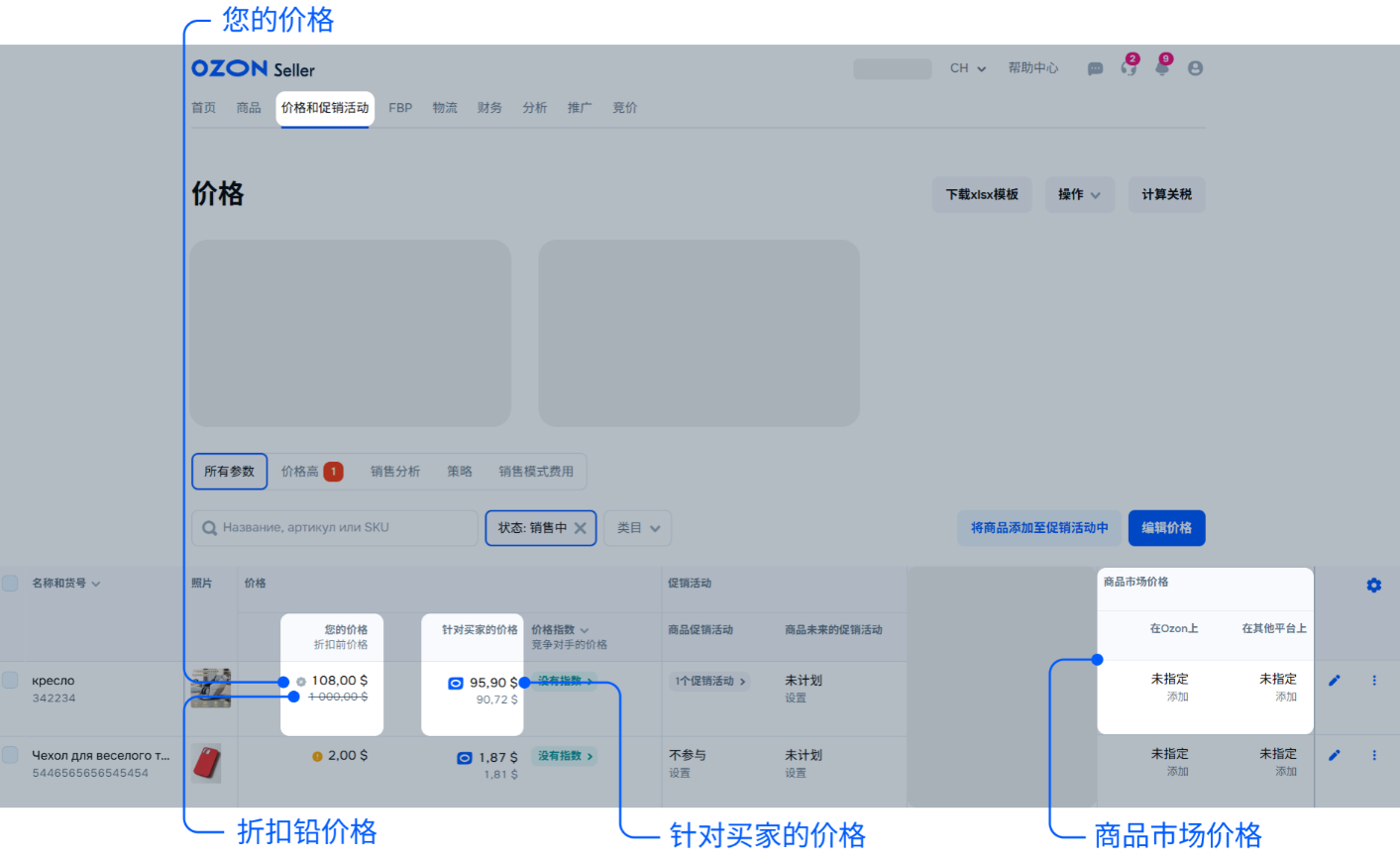 一、先搞懂Ozon的5种价格类型,定价不踩基础坑
