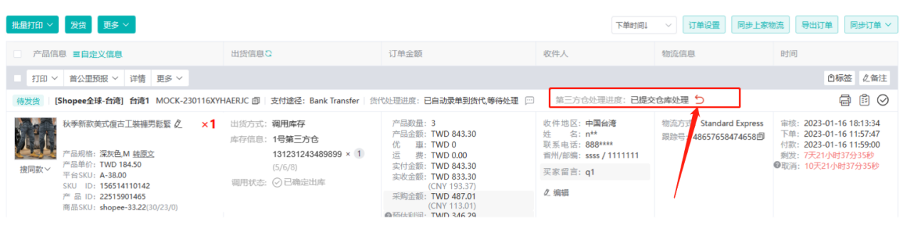完成调用后,在“出货信息”列内会显示调用信息,第三方海外仓方也会同步收到推送需求,不需要你再前往海外仓系统操作。