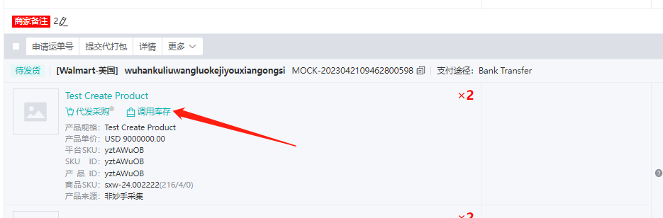 正常识别到可调用库存的情况下,点击【调用库存】,在调用库存发货的弹窗中,系统会匹配好sku数量、商品sku。