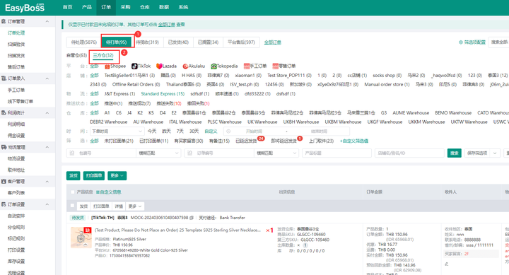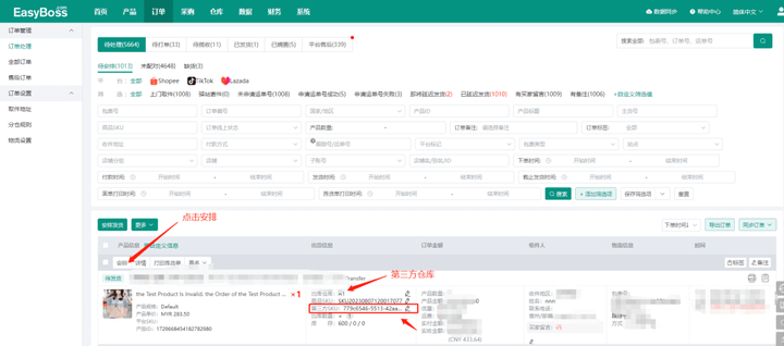 安排成功后,订单流转到“待打单”列表,可筛选三方仓的订单查看,此时第三方仓库将安排发货。