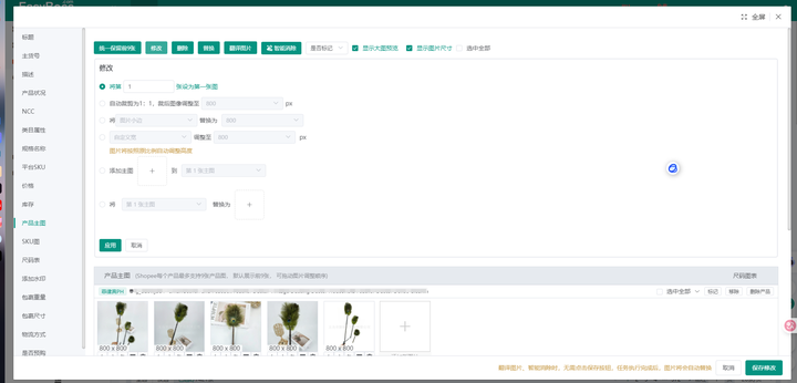 图片要清晰、无模糊和失真现象,分辨率高,建议像素保持在800*800,以展示商品细节,增强消费者信任。采集的商品图若尺寸不合适,可以用EasyBoss内嵌的作图工具批量修改尺寸。