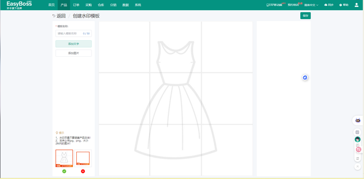 在不影响商品展示的前提下,为图片添加水印和 Logo,用于品牌宣传和防止盗图。为了提高效率,可以使用像EasyBoss ERP这样的工具,在产品编辑的过程批量添加水印。