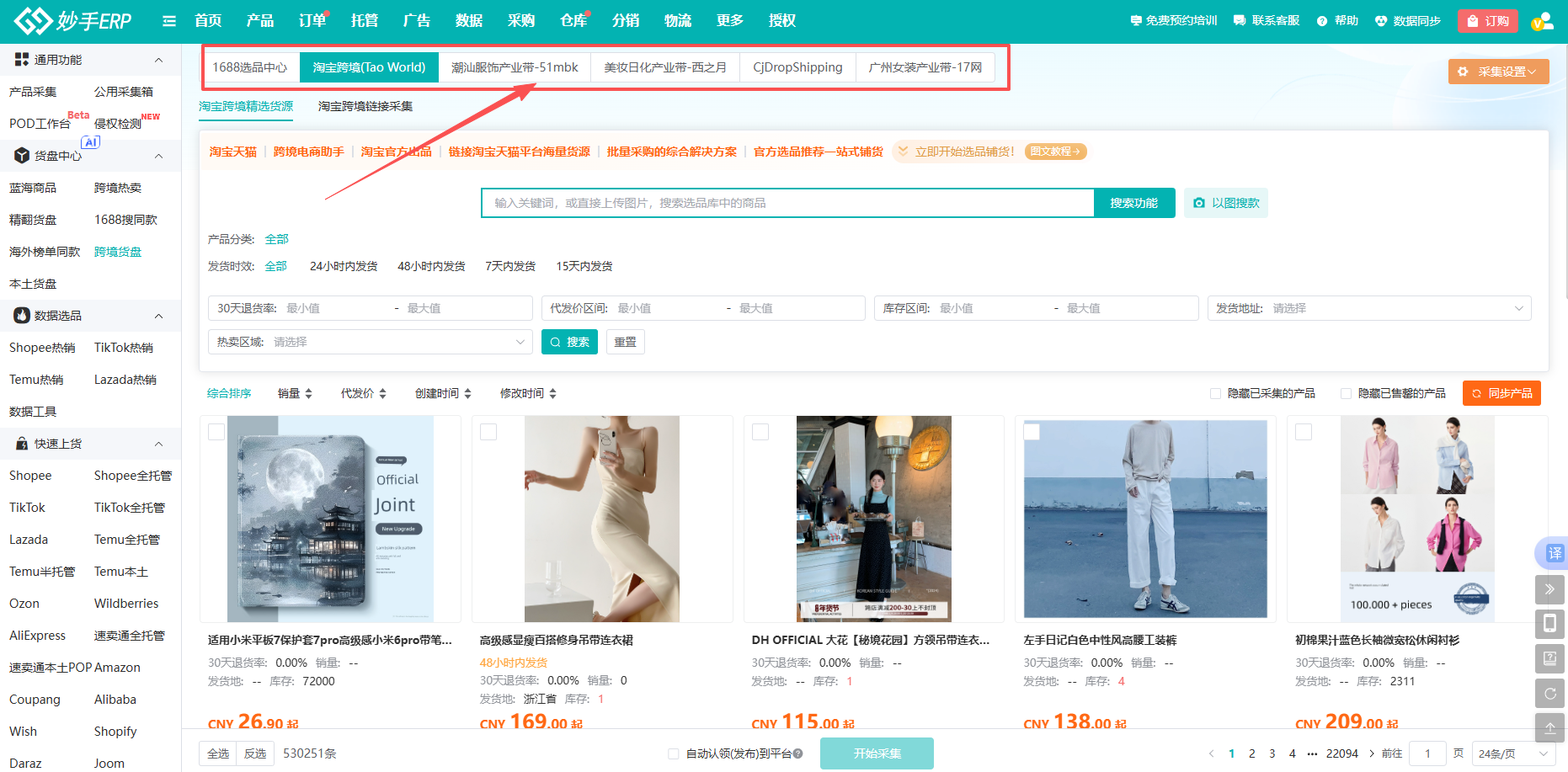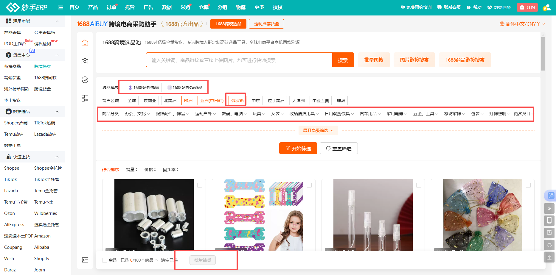 如果你还在纠结Ozon货源怎么找,或者被缺货问题折磨,真的可以试试妙手ERP,妙手ERP的货盘中心整合了1688亿级货源、产业带直供、本土货源等渠道,覆盖了Ozon卖家的所有货源需求,而且操作简单,一键选品+上货,还能对接发货,真正实现“找货源-选品-上货-发货”全链路闭环。