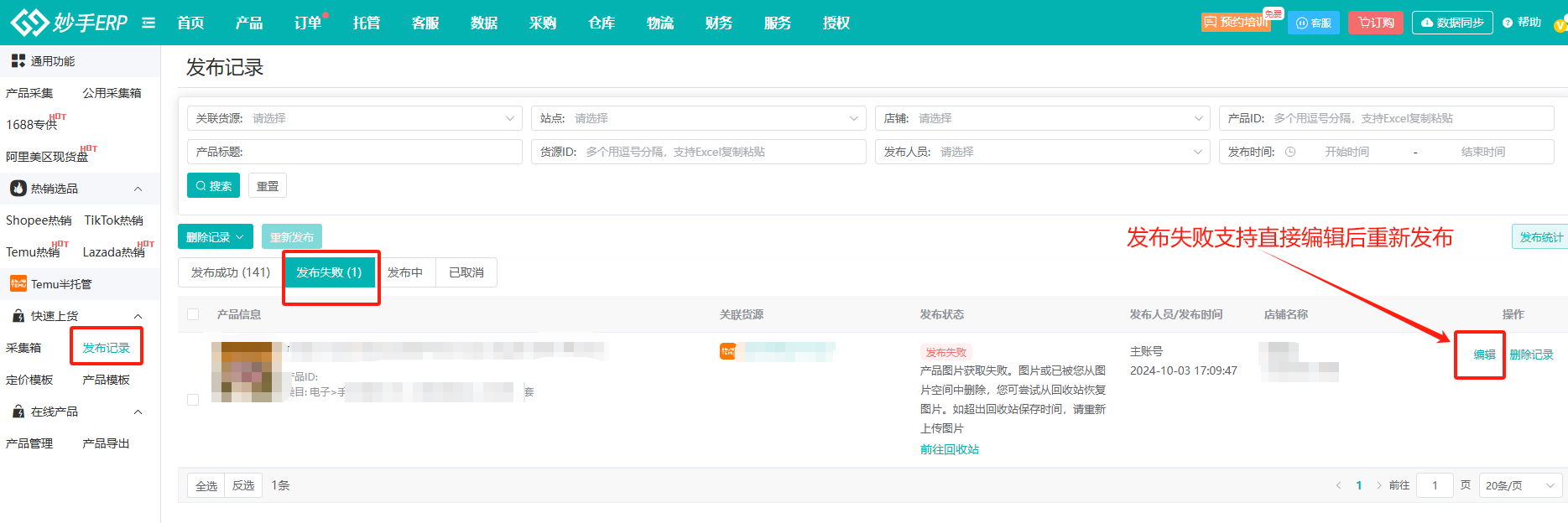 (2) 发布后,可前往发布记录中查看是否发布成功,如发布失败,支持重新编辑后二次发布