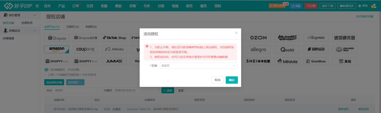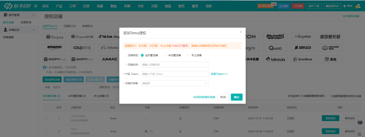 1. 授权Temu和亚马逊店铺到妙手ERP