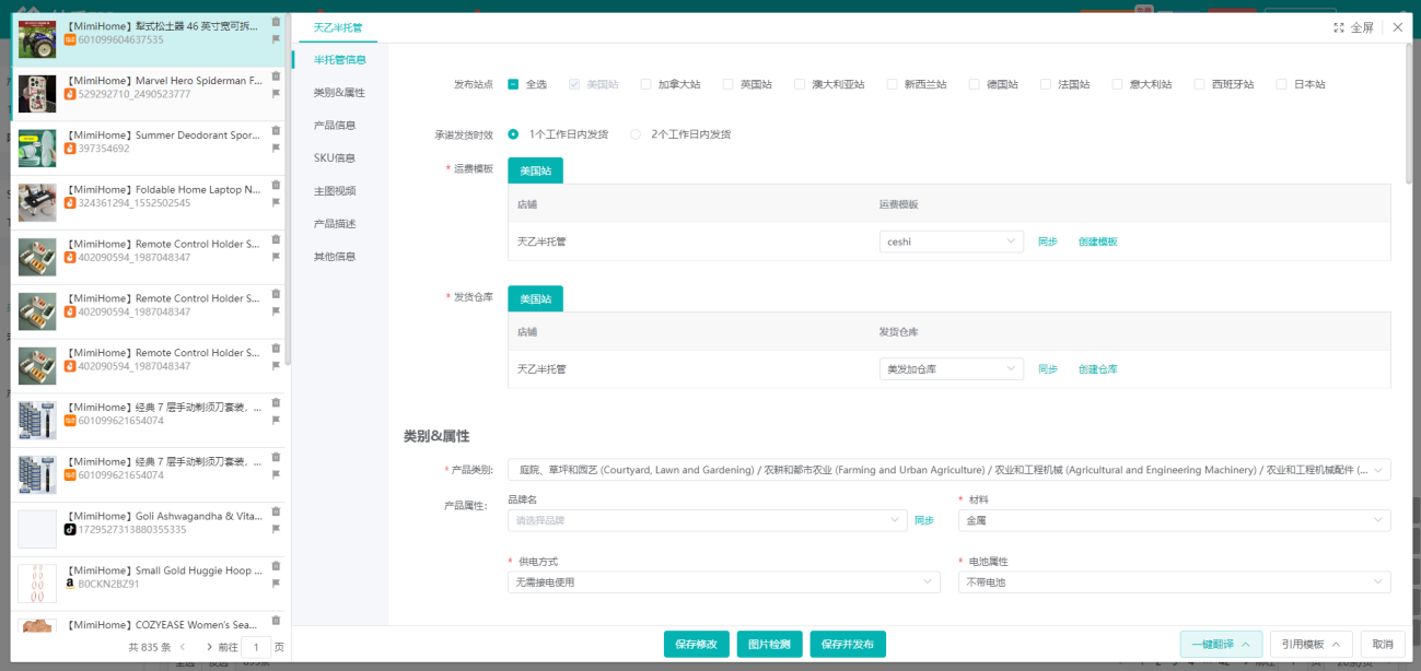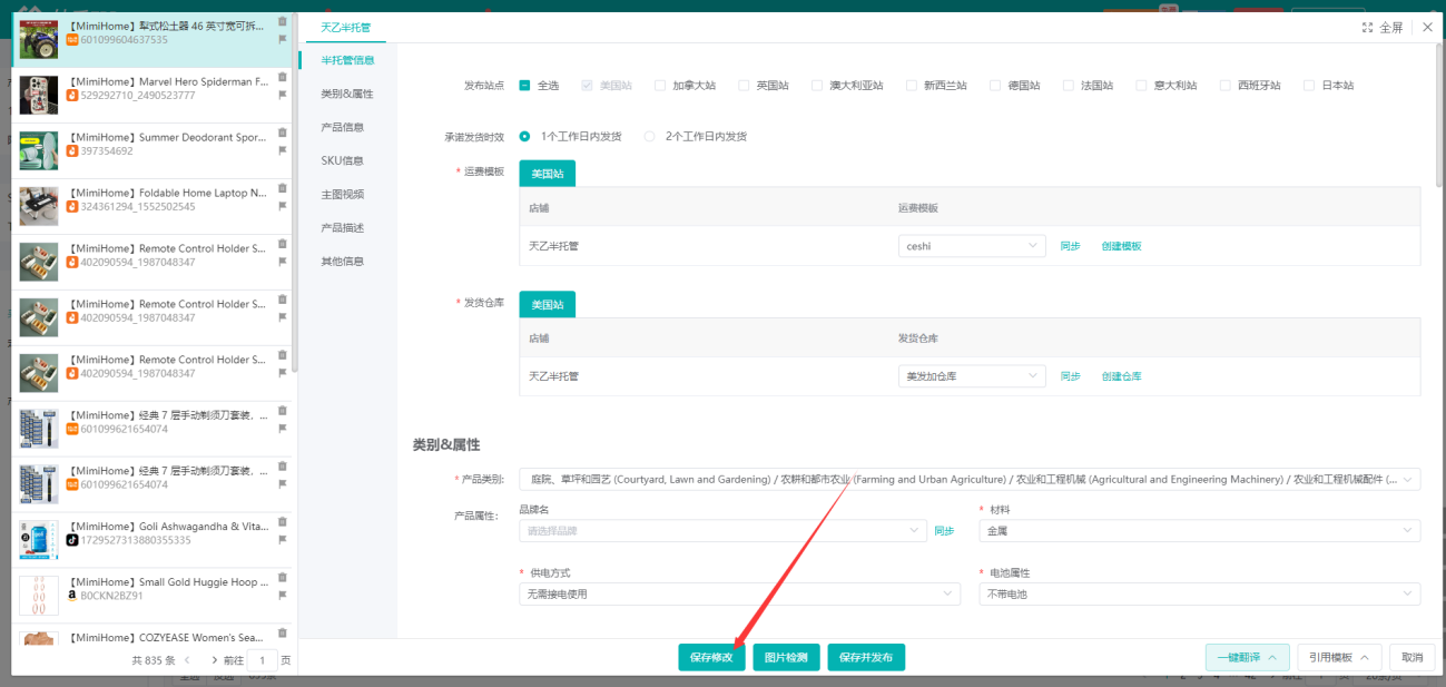 (1)产品信息修改好之后, 可批量/单独发布产品