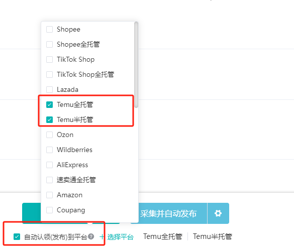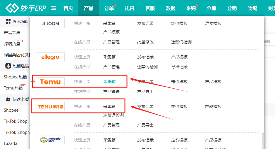 (1)如果是半托管店铺,就点击产品-选择TEMU半托管-采集箱