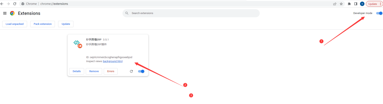 使用插件采集需要先安装插件,在妙手ERP下载谷歌浏览器插件zip文件后,在扩展管理页面,打开“开发者模式开关”,刷新页面,将zip文件拖拽至拓展程序管理页面空白处,完成安装。