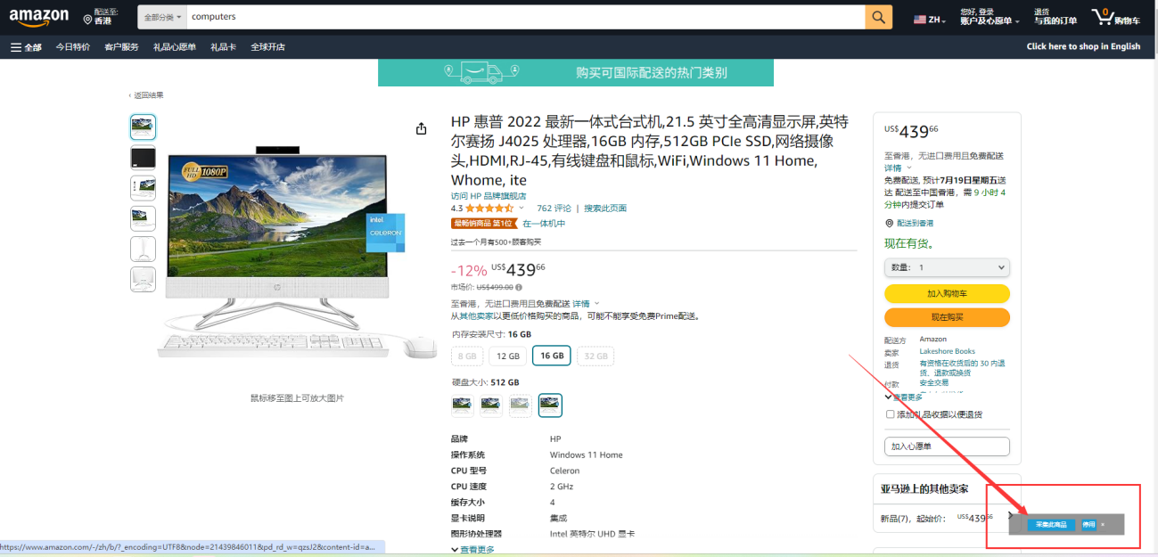 插件安装后,进入到亚马逊商品页,可直接使用插件采集产品