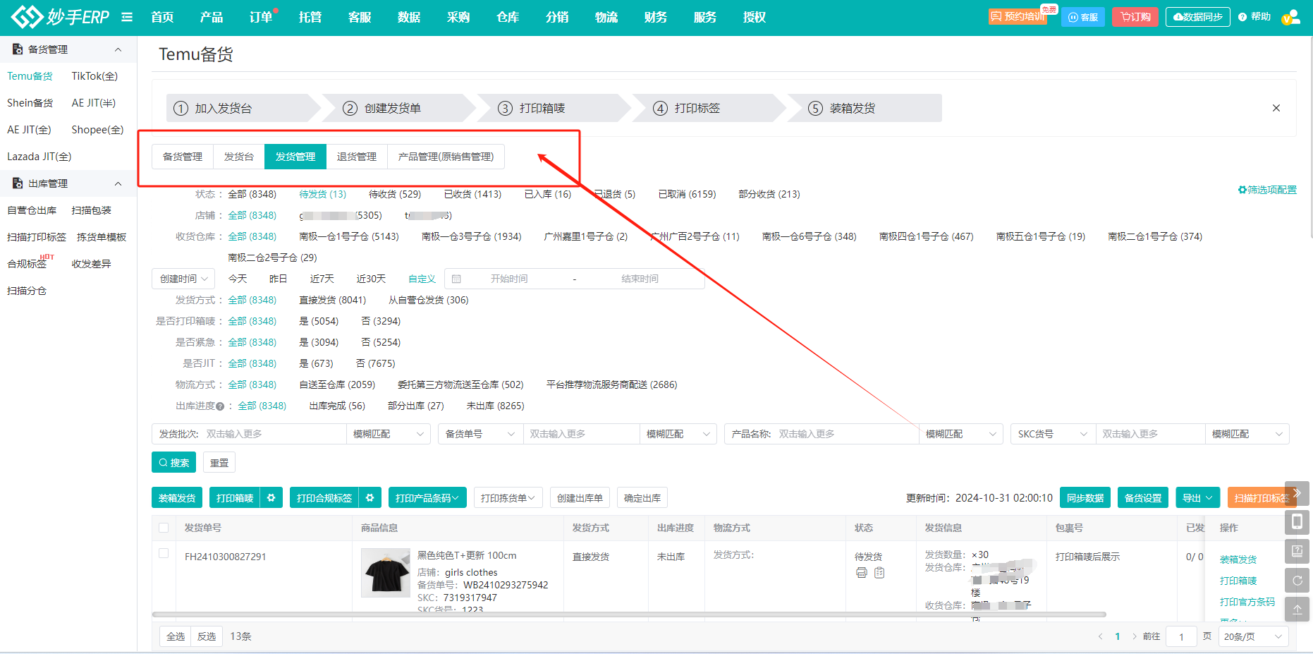 除了自动抢发货台这个功能,妙手还能实现TEMU备货全流程操作。像自营仓库存同步、批量创建发货单、批量打印唛箱、批量打印产品条码、批量处理出库单、PDA扫描/唛箱快速分拣等都是支持的,操作非常简单、方便。