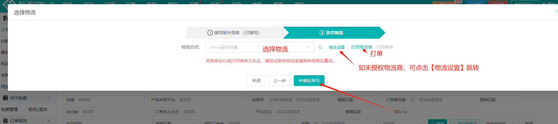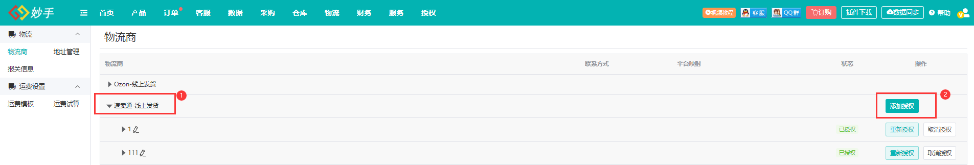 若是提交给货代贴单发货的情况,需要先联系货代绑定妙手ERP,货代绑定流程可跳转查看:货代授权流程