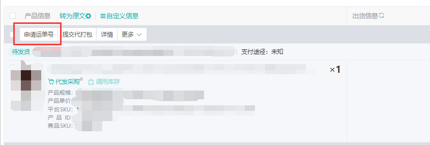 (1)仍然在“待处理”页面,点击【申请运单号】