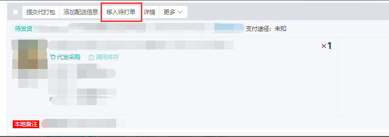 (3)报关、选择物流、申请运单号步骤完成后,可点击【移入待打单】,您可在此页面打印面单、拣货单或商品标签等,支持批量。