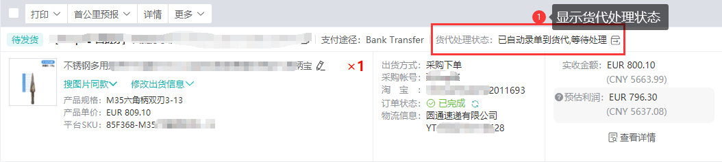 当系统获取到采购单物流信息后,就会自动录单至货代,您后续可在“待打单发货”状态查看货代处理订单的状态。