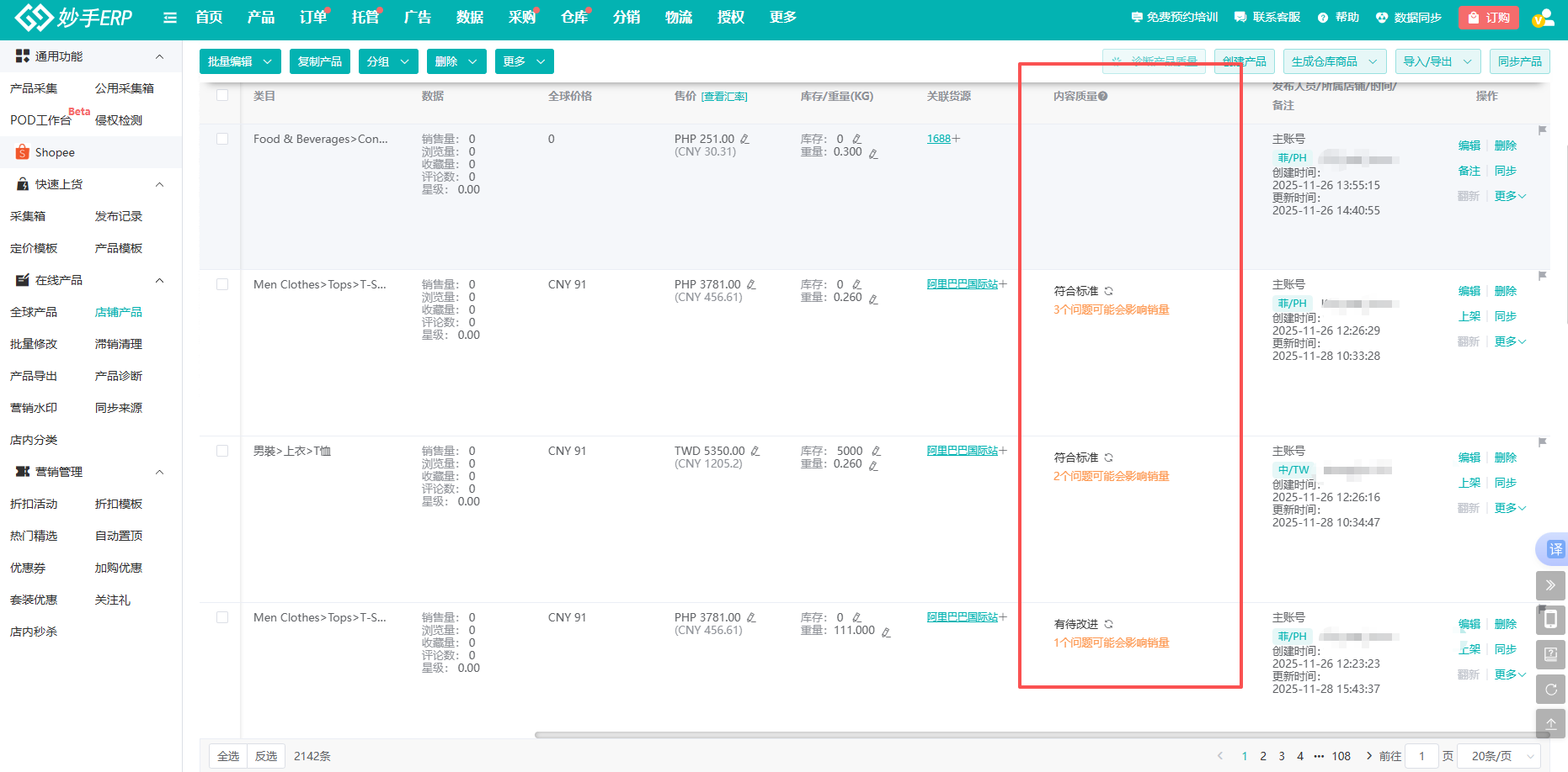 并且,发布到店铺的产品同样支持在线优化,可一键检测产品质量问题,并提供具体改进建议,方便卖家针对性进行优化。