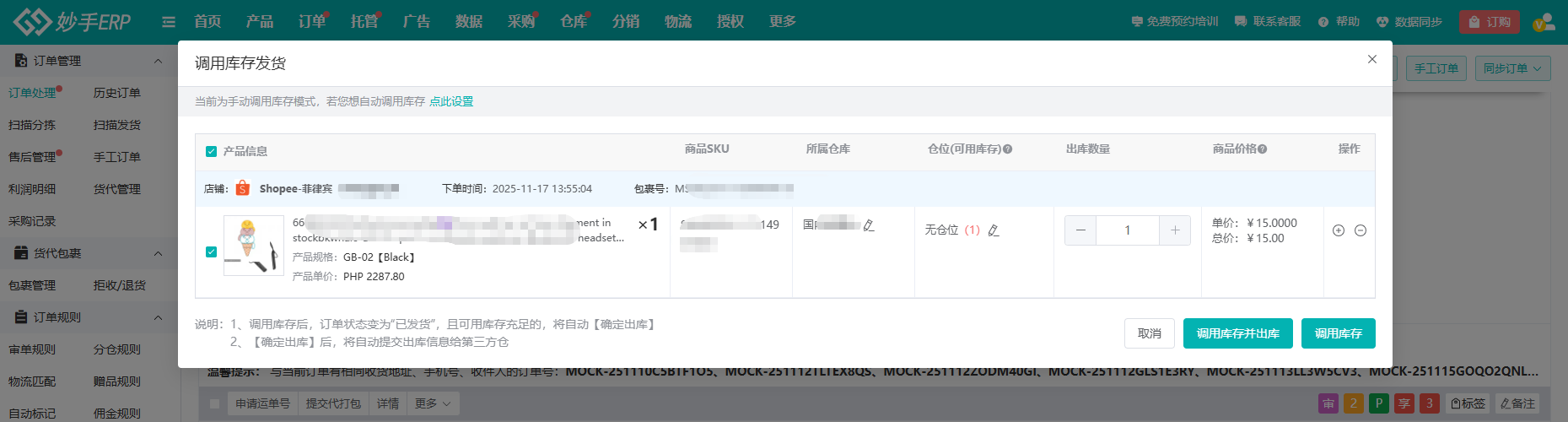 无论是自营仓还是第三方海外仓,都支持在妙手进行绑定,绑定仓库并将仓库商品SKU和店铺产品SKU进行映射后,即可实现仓库库存与店铺订单的智能联动。不仅支持卖家调用库存发货,包裹发出,系统自动扣减仓库库存,帮助卖家精准掌握库存现状。