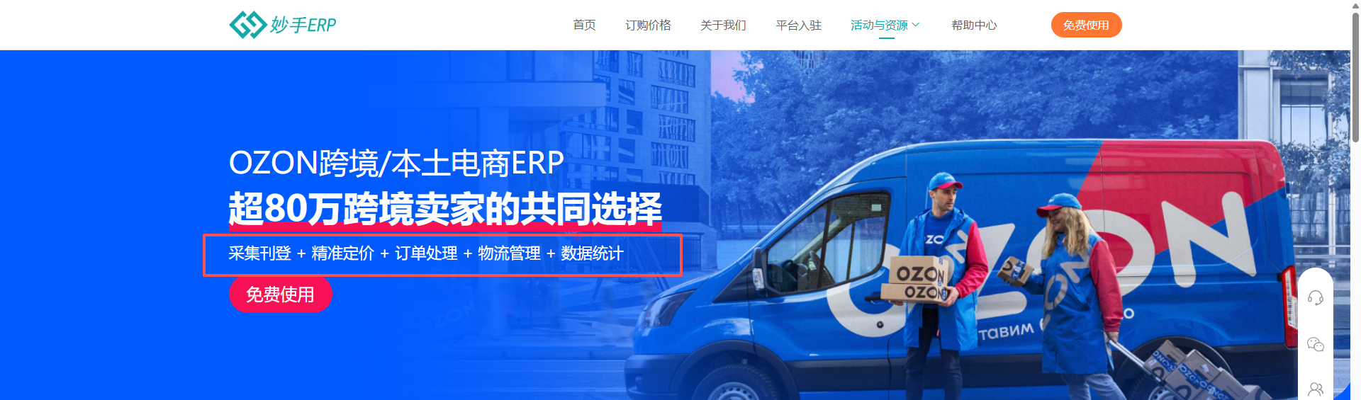 妙手ERP,80万+跨境电商卖家的共同选择,致力于为Ozon跨境电商平台卖家提供采集刊登、精准定价、订单处理、物流管理、数据统计、财务等一体化服务。