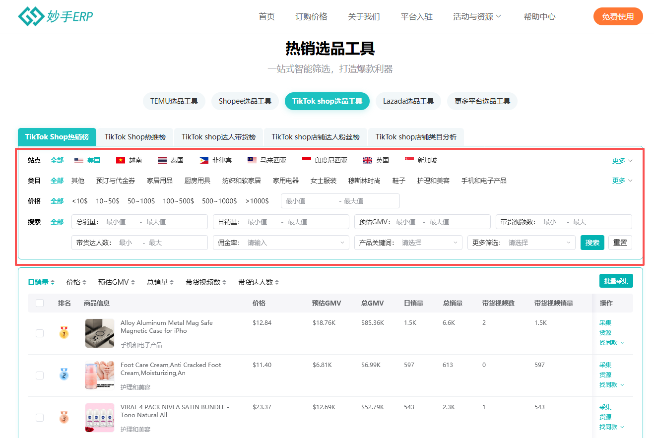 步入精细化运营时代,善用数字化工具已成为提升效率的关键。在TikTok小店选品环节,妙手ERP是值得推荐的高效辅助工具。
