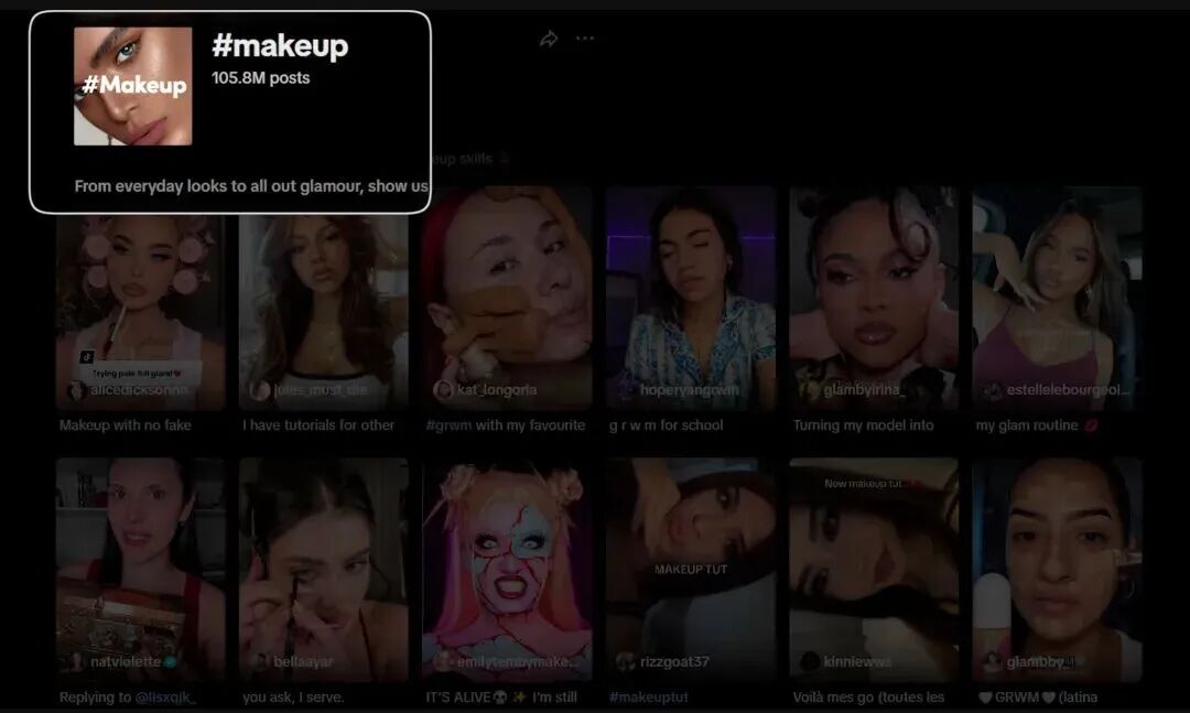 趋势标签(1个):结合流行趋势,#makeupTutorial(化妆教程)