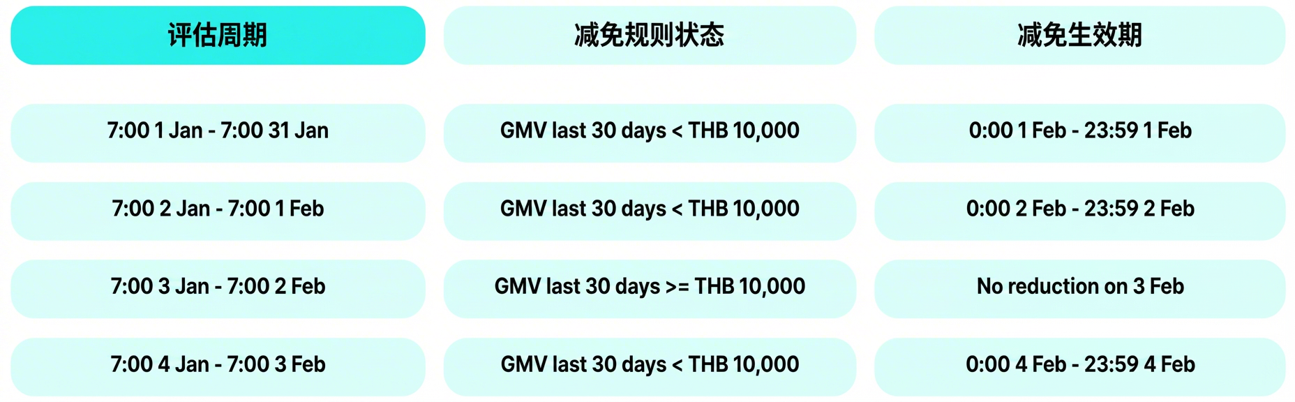 对于 2026 年 5 月 3 日之后入驻的商家,减免上限将调整为 3,000 泰铢,减免期为入驻后的前 21 天。