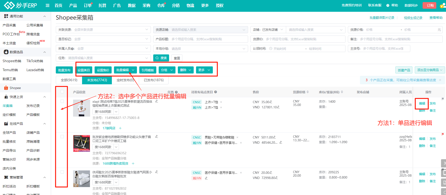 手动在Shopee后台逐一上架产品,不仅流程繁琐、耗时耗力,还容易因操作疲劳导致信息错误。妙手ERP作为一款专为跨境电商打造的智能化管理软件,能够完美解决这些痛点: