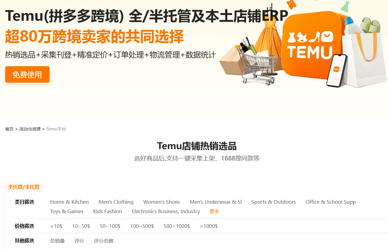跨境电商的竞争已进入数据驱动时代,一款高效的特姆选品助手,能让你在茫茫商品蓝海中精准捕捉爆款,实现销售增长。 在Temu全球快速扩张的背景下,科学选品和高效上架已成为卖家突围的关键。面对平台海量商品竞争,传统“跟风选品”不仅效率低下,而且极易陷入低价内卷,利润空间被严重压缩。作为一名Temu卖家,你是否常感到选品难、数据分散、运营效率低?本文将为你深度解析市面上主流的特姆选品工具,并重点推荐一款全能型解决方案——妙手ERP,助你轻松应对选品挑战。 01 为什么需要特姆选品助手? 随着Temu已覆盖86个国家,平台流量红利仍在,但对卖家的运营能力要求越来越高。 Temu卖家面临的三重挑战: 海量商品竞争,缺乏差异化:平台上同类商品同质化严重,单纯跟风热销榜容易陷入低价竞争,而爆款生命周期仅3-5天。 数据分散,决策依赖经验:手动整理多平台数据耗时费力,难以快速捕捉市场趋势与用户需求变化。 政策变动风险高:平台规则调整、季节性需求波动等因素,要求卖家灵活调整选品策略。 在Temu的竞争已进入精细化运营阶段的今天,只有“数据驱动+工具赋能”的卖家才能持续盈利。 02 为什么推荐妙手ERP?全方位解决方案 在众多特姆选品助手中,妙手ERP以其全链路功能覆盖和极致性价比,成为众多跨境卖家的共同选择,尤其适合追求效率与精细运营的商家。 核心优势一:深度对接官方选品数据 妙手ERP已深度接入Temu“Best Seller”板块,除了同步平台潜力数据这一基础操作外,还提供【1688找同款】、【批量关联同款】、【多店查看爆款数据】等特色功能。 具体价值: 一键同步多店数据:可一键同步多个TEMU半托管店铺的Best Seller数据,全局掌控爆款趋势。 精准筛选:支持按类目(如家居→可折叠收纳箱)层层钻取,精准定位蓝海细分品类。 货源直连:针对平台推荐的Best Seller款产品,系统自动以图识图匹配同款商品,卖家可一键采集快速上架。 核心优势二:从选品到上架的全链路提效 妙手ERP真正实现了从选品到上架的全流程覆盖,远超单一选品工具的功能局限。 选品环节: Temu热销榜+1688货源直连,降低试错成本 实时同步Temu全托管、半托管、官方推荐热销榜,避免跟风过气爆款 多维度筛选(价格、销量、评分),精准匹配目标市场 上架环节: 批量编辑/翻译/抠图,效率提升3倍 AI智能优化:自动生成标题、描述、合规标签 支持采集1688、Tik Tok等100+国内外货源平台商品,快速上货到多个平台多个店铺 核心优势三:极致性价比与轻量化操作 对于成本敏感的中小卖家而言,妙手ERP提供了极具吸引力的价格方案: 免费授权2个店铺,单店月费低至18元 界面简洁直观,无需复杂培训,新手也能快速上手 80万跨境卖家选择,尤其适合Temu/TikTok多平台运营者 03 妙手ERP选品实操教程:3步锁定潜力爆款 下面通过详细教程,展示如何利用妙手ERP进行高效选品。 步骤一:进入热销选品界面 1. 首先点击下方图片注册妙手账号,然后登录妙手ERP,点击【产品】→【Temu热销】 2. 选择数据模式:全托管 / 半托管 / 官方推荐(需授权半托管店铺) 步骤二:筛选与分析爆品 在妙手ERP的选品界面,你可以利用多种筛选维度精准定位潜力商品: 按类目筛选:如家居、电子、服饰等 按价格区间筛选:建议关注5-30美元区间,平衡利润与销量潜力 按排序方式分析:按日销量、总销量、评分等多维度排序 数据解读技巧: 高增长新品:总销量不高但近期销量激增(如7日日均增幅>50%) 成熟爆款:总销量高但增长放缓,需谨慎跟卖 步骤三:一键采集与货源对接 1. 采集商品:点击商品右侧【采集】按钮,自动存入公用采集箱 2. 寻找货源:点击【货源】→跳转1688跨境专供,匹配低价货源,可降低采购成本20%+ 3. 竞品分析:通过【Temu搜同款】分析竞品定价策略,避免定价过高或过低 4. 批量编辑:在采集箱内批量编辑产品信息,优化Listing 5. 一键发布:完成后选择【保存并发布】,将产品快速上架到Temu店铺 步骤四:利用AI工具优化Listing 妙手ERP内置的AI工具能进一步提升优化效率: AI生成标题/描述:自动生成符合平台规则的优质标题与描述 AI图片处理:智能抠图、一键换背景、添加水印,使商品图片更专业 智能翻译:支持批量图片文字智能翻译,轻松应对不同市场需求 04 卖家实战案例与效果反馈 众多Temu卖家通过妙手ERP实现了选品效率和销售业绩的双重提升。 案例一:某家居类目卖家使用妙手ERP后,表示“从选品到上架,原来3天的工作现在1小时完成”,大幅提升了运营效率。 案例二:深圳卖家李女士使用类似的AI选品功能,锁定欧美市场冬季热销的“便携暖手宝”,结合数据分析优化定价,单月订单量增长200%,ROI提升40%。 这些案例证明,通过数据驱动的选品策略配合高效的工具,卖家完全可以在竞争激烈的Temu平台中找到自己的蓝海市场。 05 行动建议:Temu选品关键策略 结合工具特性与平台趋势,给Temu卖家以下几点选品建议: 1. 锁定潜力类目:优先布局家居园艺、户外运动、宠物智能用品等平台流量倾斜类目。 2. 微创新突围:在热销款基础上增加实用功能(如可折叠设计),避免完全同质化竞争。 3. 紧跟官方推荐:每日查看平台Best Seller板块中的稀缺款,优先发布急招类目。 4. 数据驱动决策:定期分析销售数据,通过点击率、转化率等指标挖掘用户偏好,优化商品标题与主图设计。 5. 快速反应供应链:利用妙手ERP的1688找同款功能,24小时内完