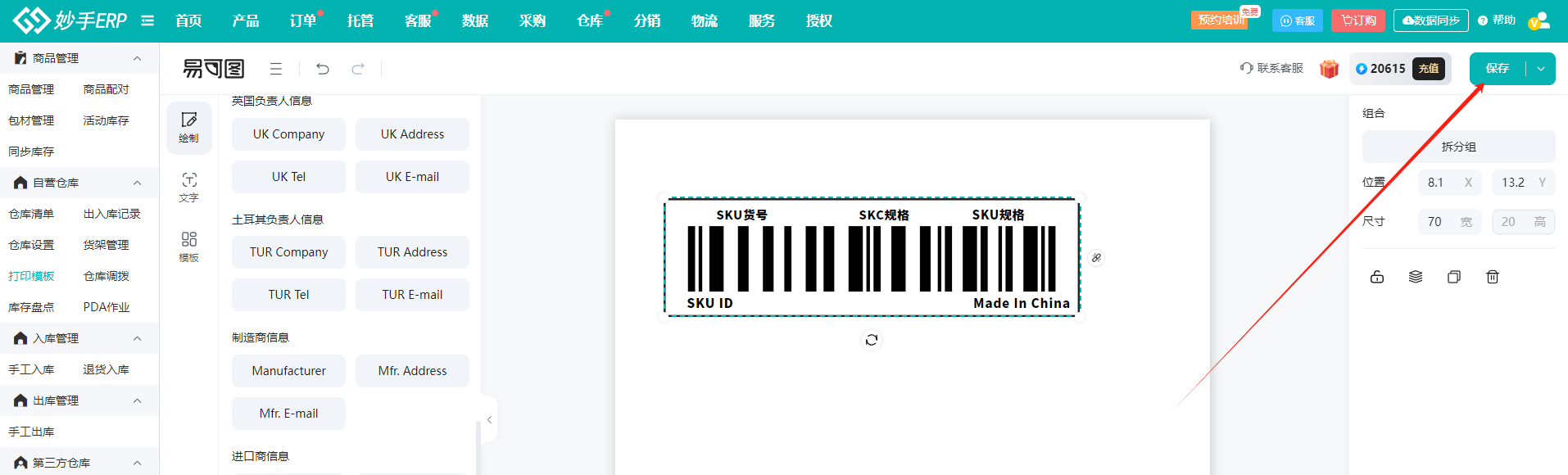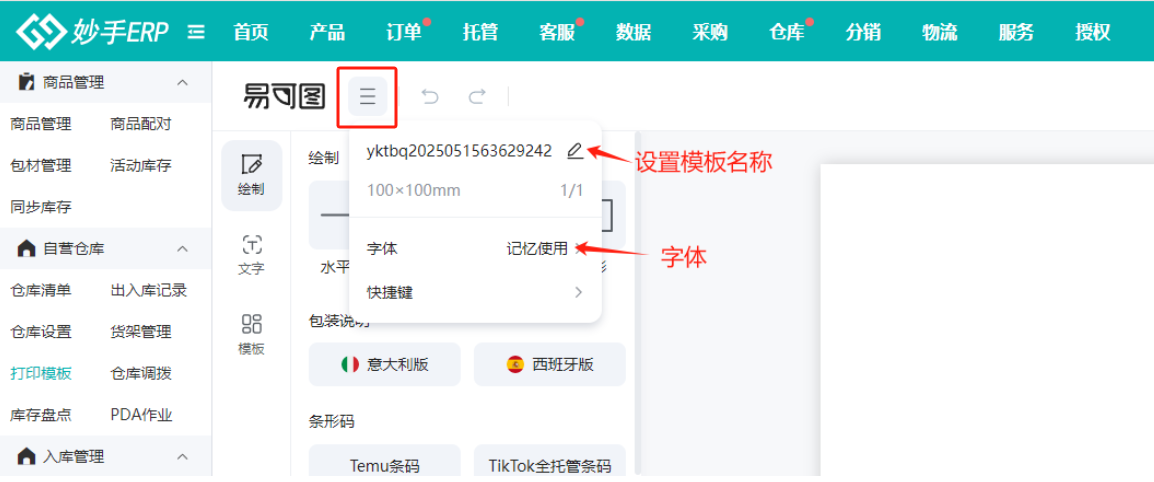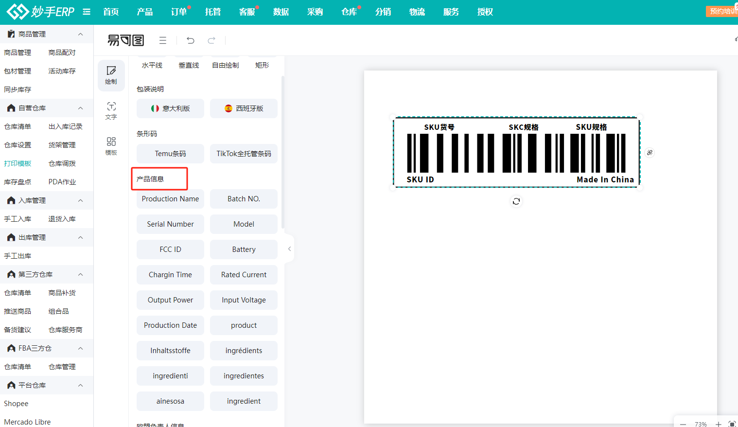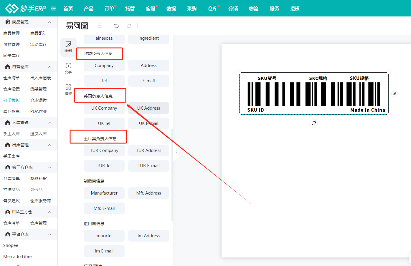 下面通过详细的欧代标签模板制作教程,展示如何利用妙手ERP快速生成合规的欧代标签。