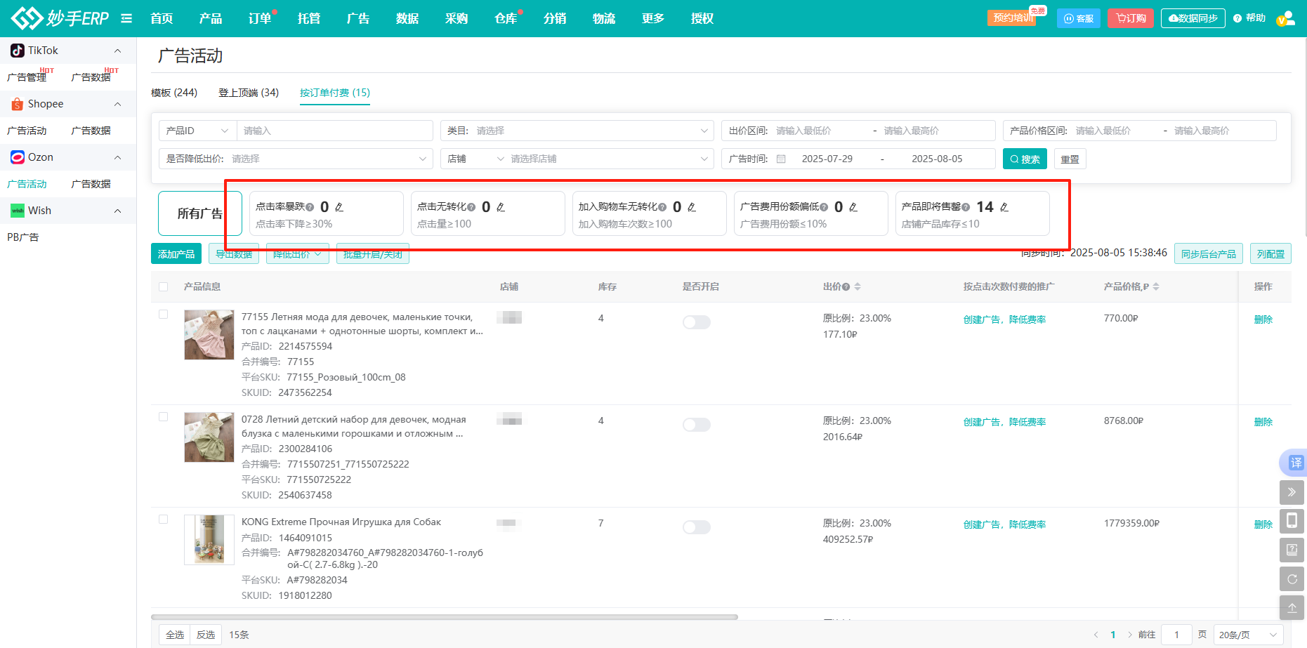 三、工具推荐:妙手ERP——Ozon卖家的广告管理利器