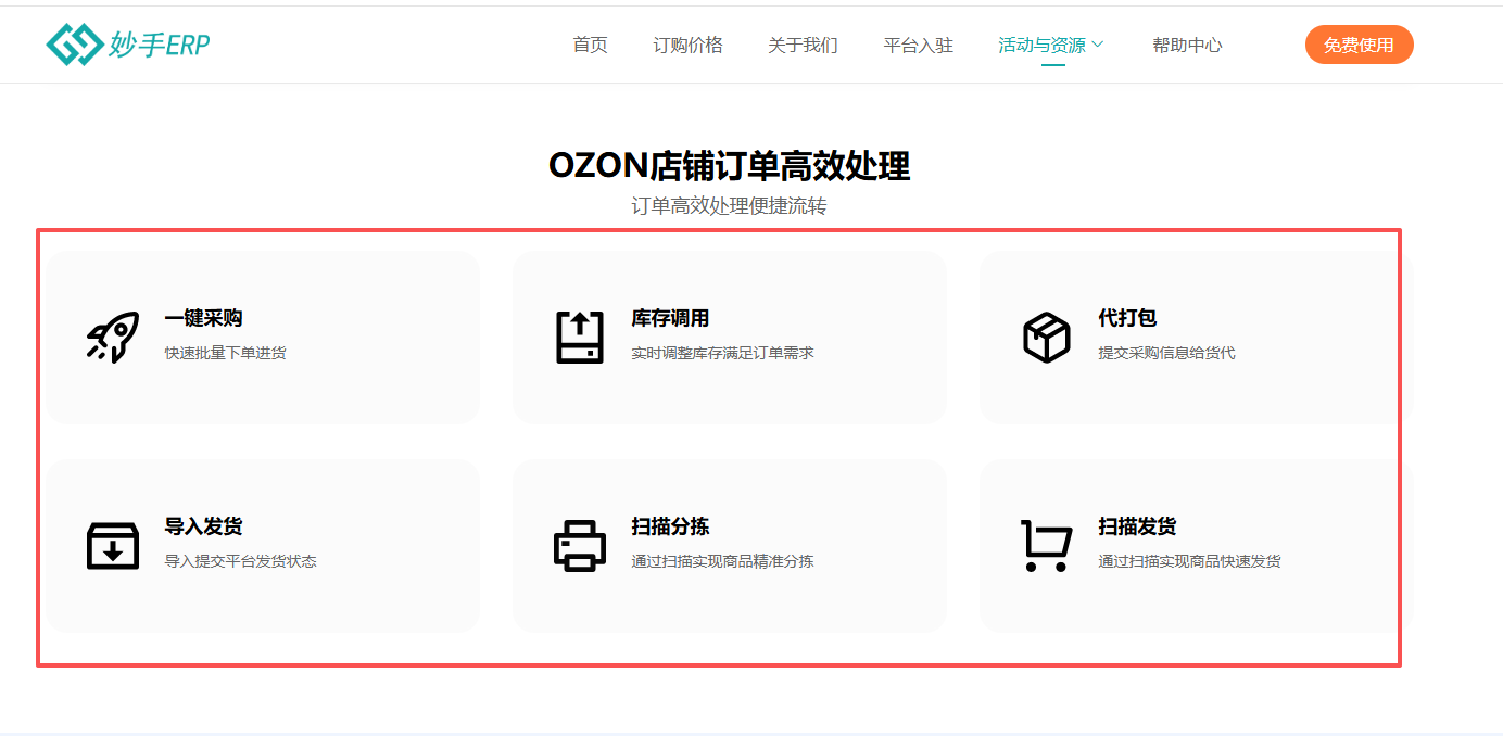 以我个人正在使用的妙手ERP为例,它能够实现Ozon订单处理的全链路自动化管理。