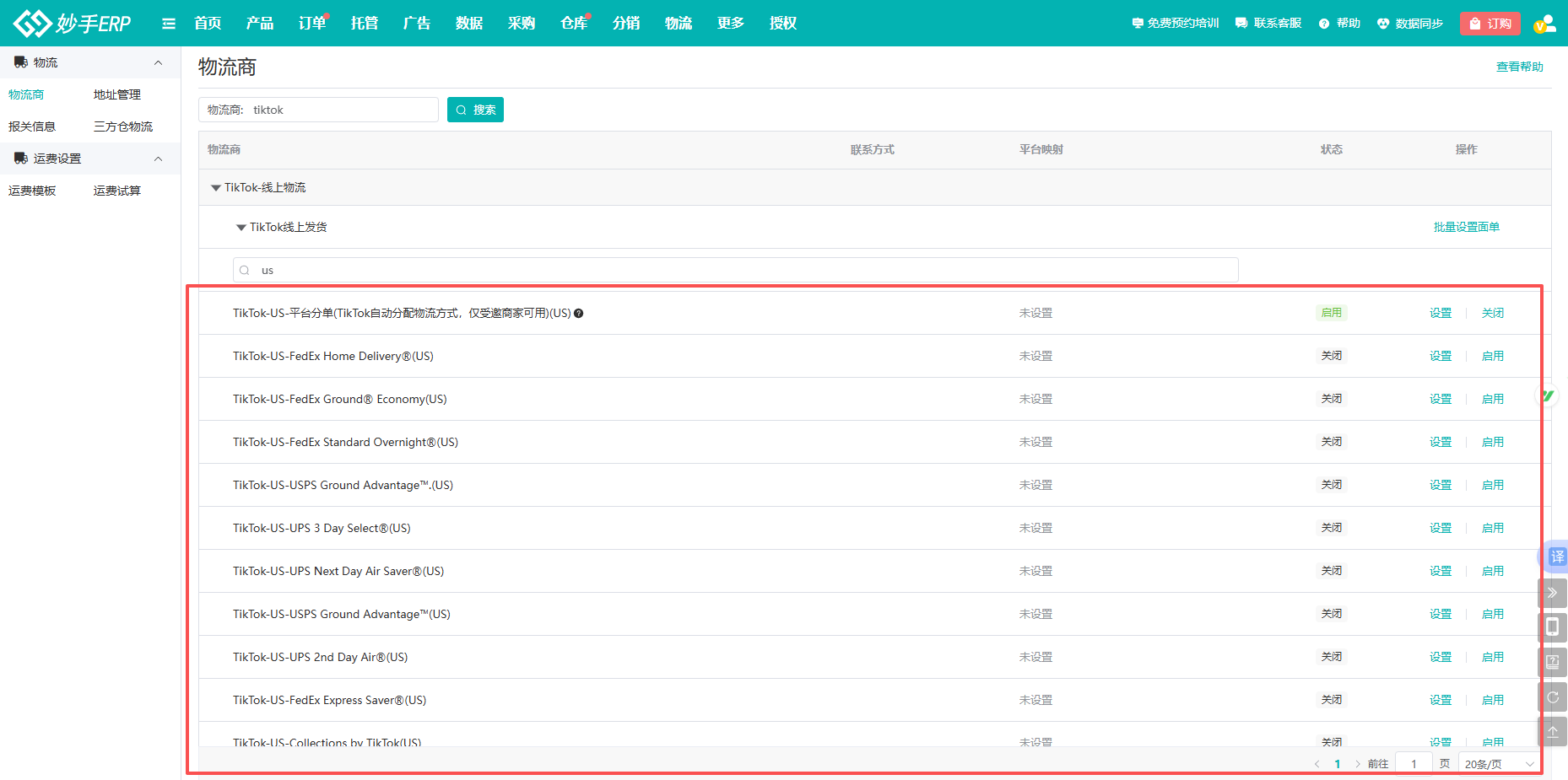 妙手ERP已与TikTok Shop线上物流完成深度集成,除了USPS,还支持卖家选择并启用UPS、FedEx等其他官方合作物流渠道,实现发货流程的全面优化。
