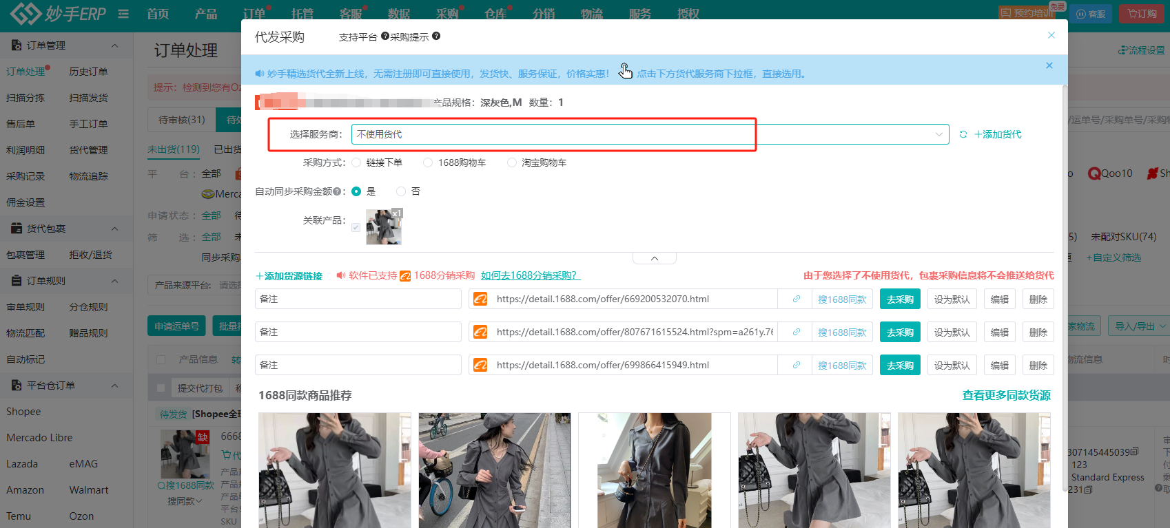 三、美客多无货源发货全流程详解:妙手ERP代发采购发货教程