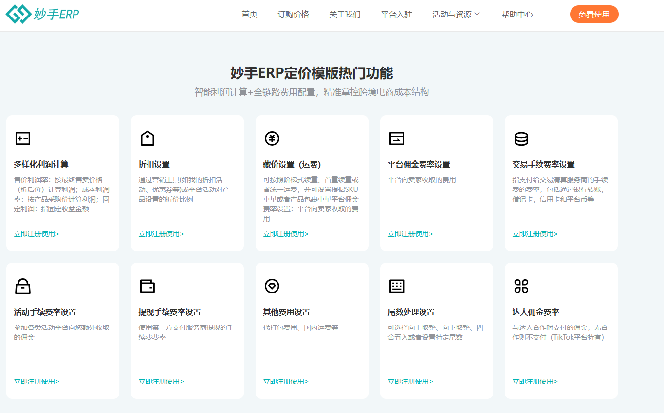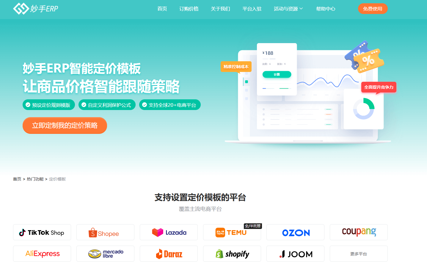 更具吸引力的是,妙手TikTok定价模板功能完全免费,大家只需授权TikTok店铺后,即可直接使用,无需任何成本,就能轻松上手专业的TikTok定价工具。