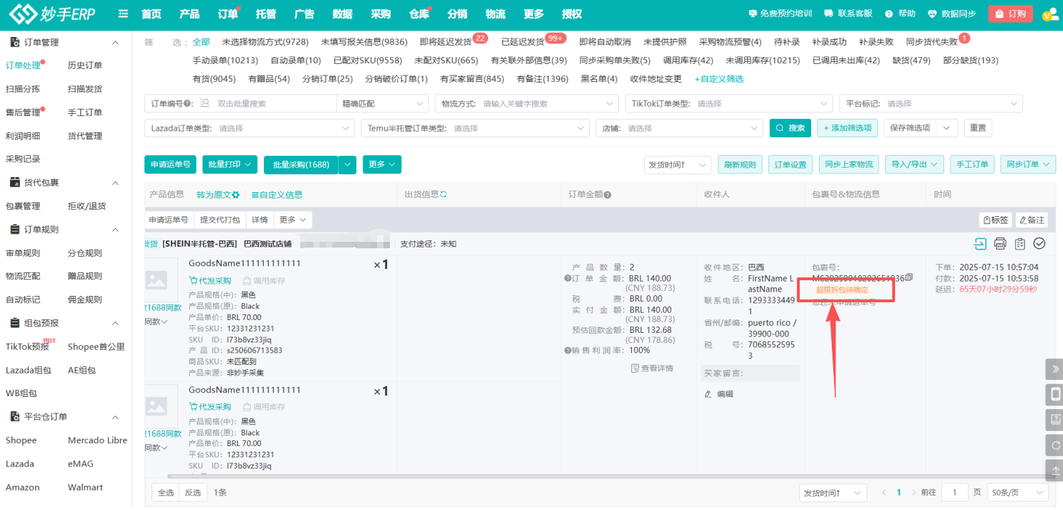 2、目前妙手ERP支持墨西哥站点的订单显示超限提示,巴西站点还在对接中,后续上线