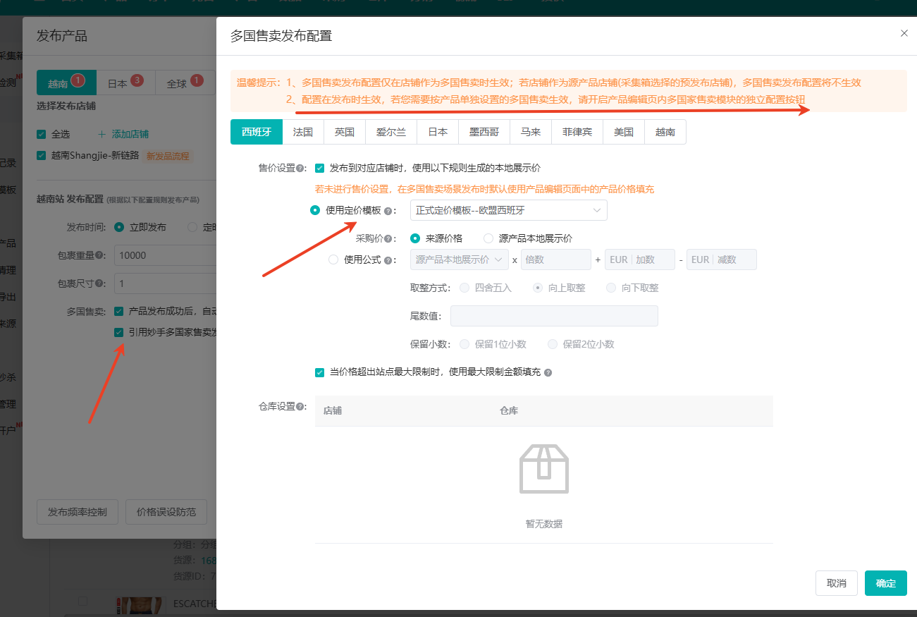 TK升级新模式以后,在商品编辑页面设置了售价,在发布设置页面也设置了以哪一项为准