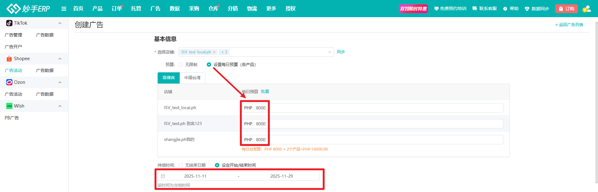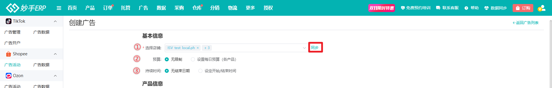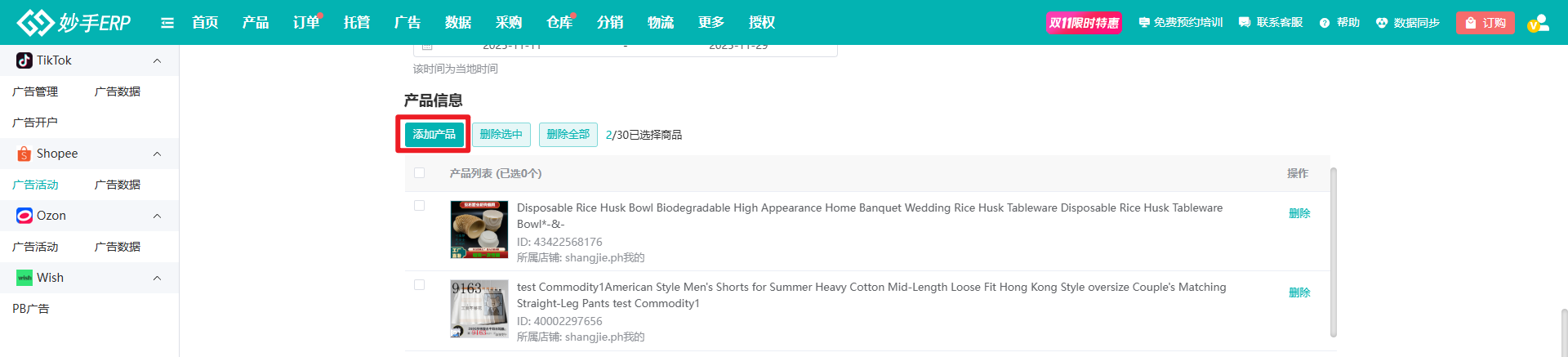 (1)进入妙手ERP=>广告=>Shopee=>广告活动