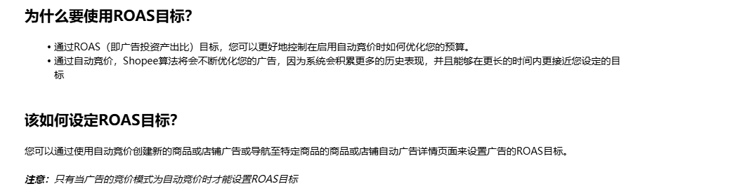 - 目标广告投资产出比(目标ROAS),点此查看更多Shopee官方说明