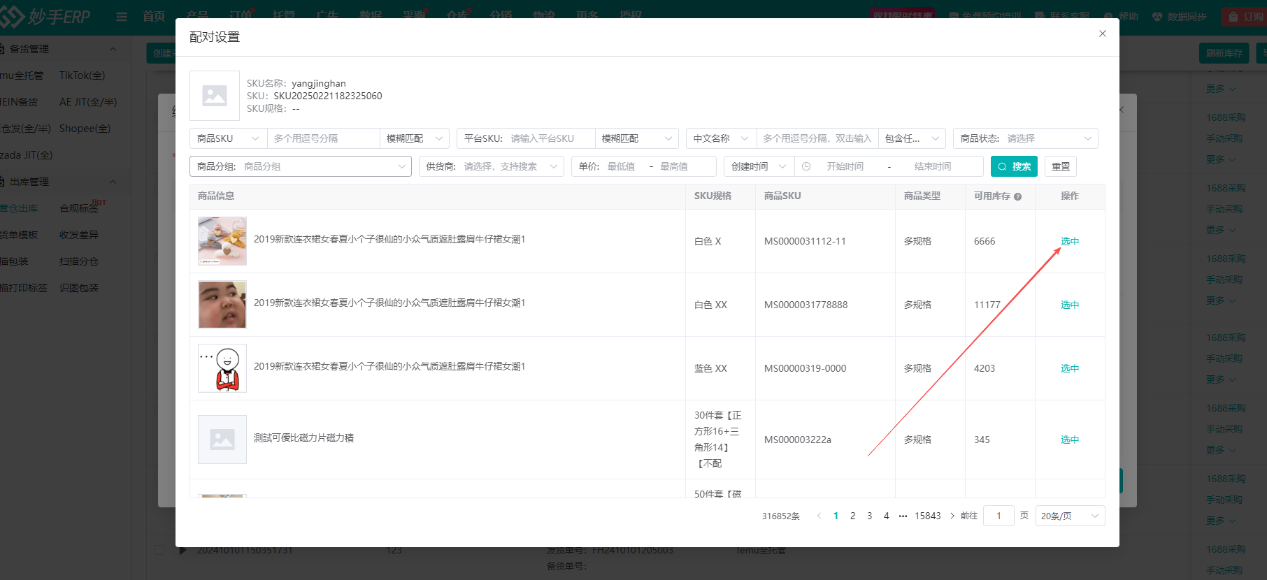 在编辑出库单的弹窗中,可点击【修改配对】,修改自营仓配对商品