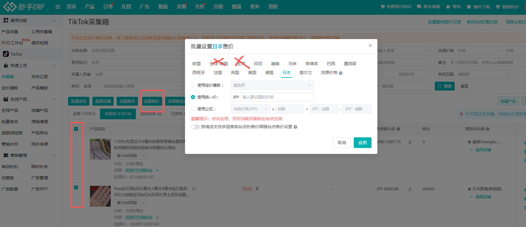 比如:首发店铺是日本,就选择日本再设置售价!否则无法修改成功!