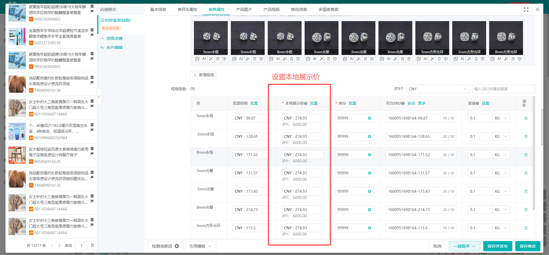 首发店铺需要设置本地展示价,本地展示价设置多少,发布到店铺售卖的价格就是多少,点击铅笔小标即可设置本地展示价