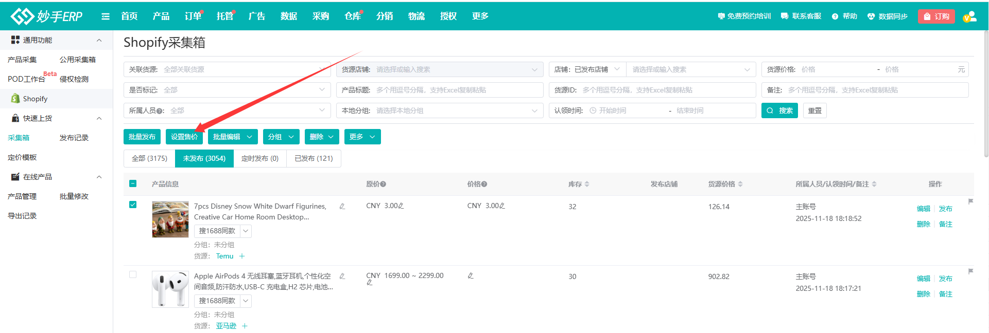 妙手ERP怎么设置价格发布到虾皮Shopee平台?