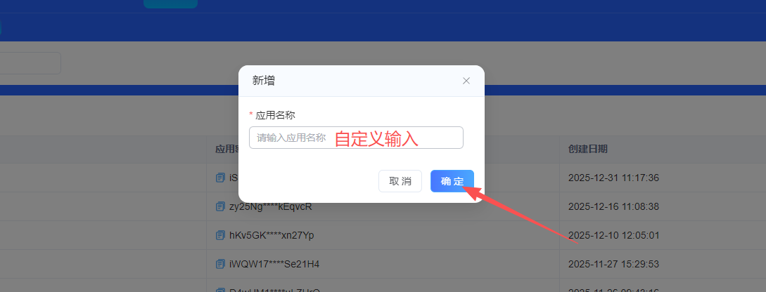 (3)自定义输入应用名称后,点击【确定】