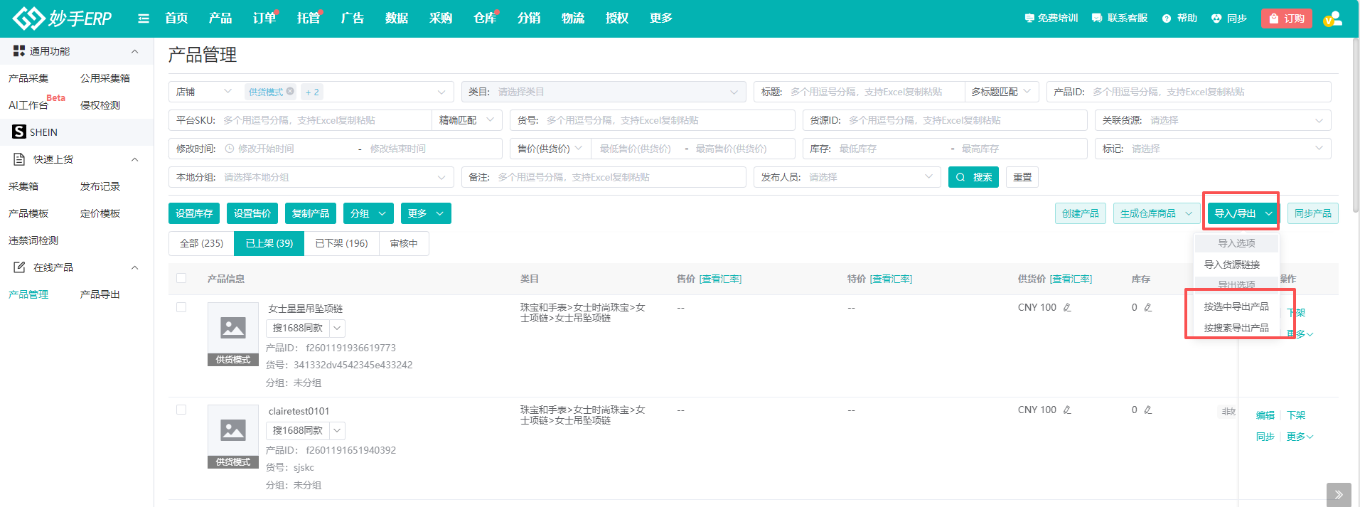1、本教程讲解已发布到跨境平台的商品,使用妙手ERP导出在线商品数据的流程