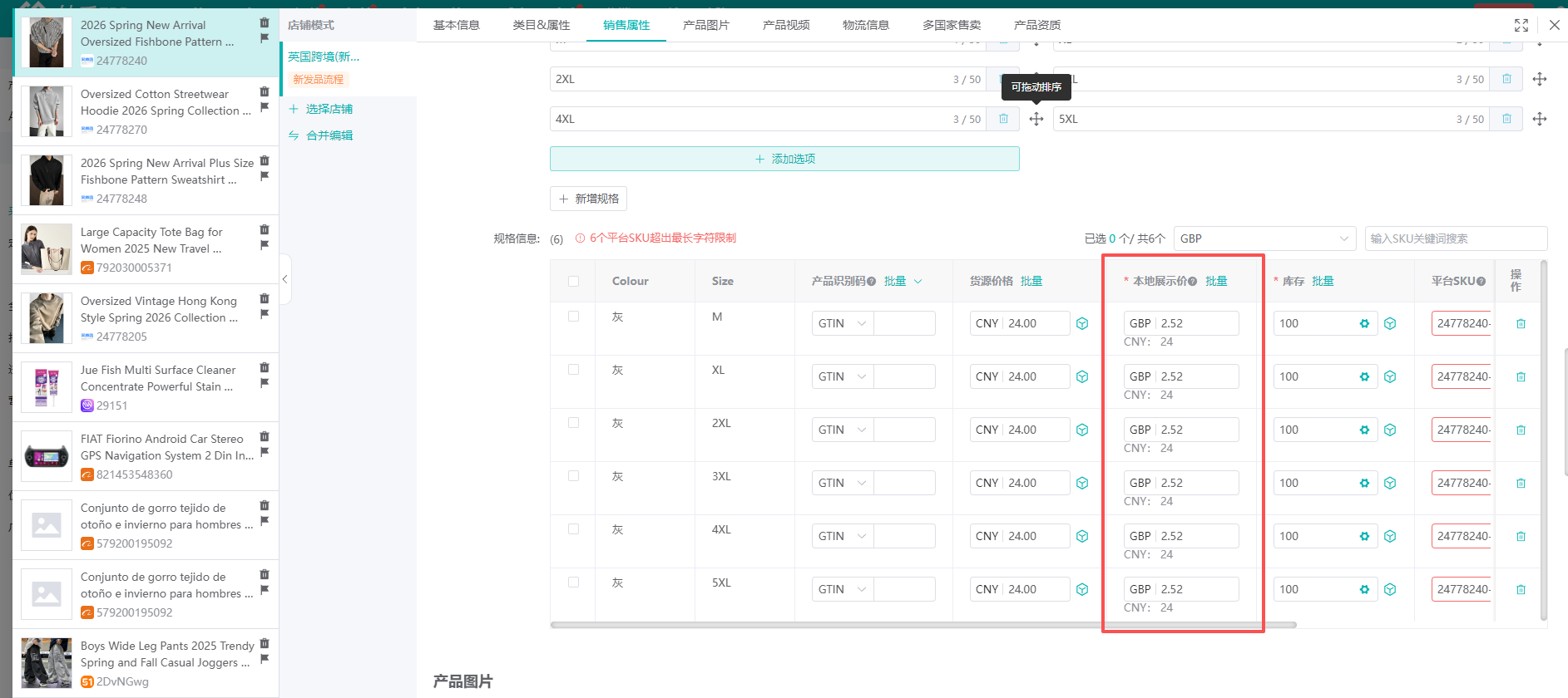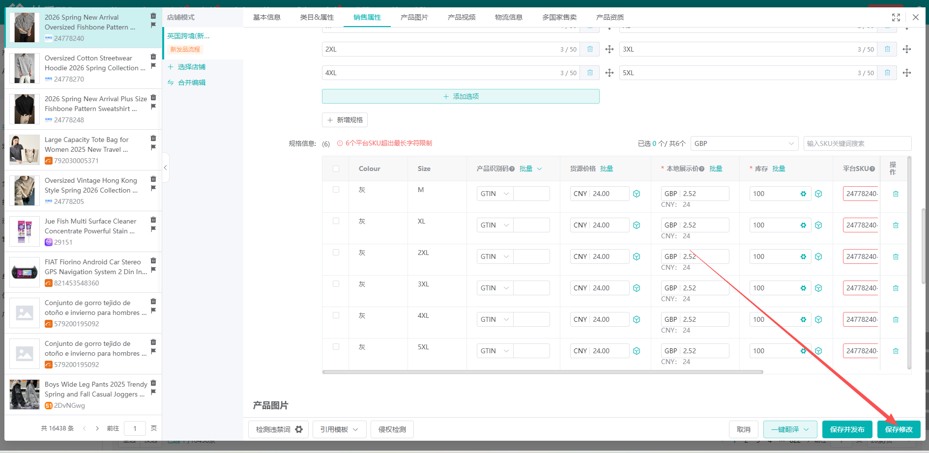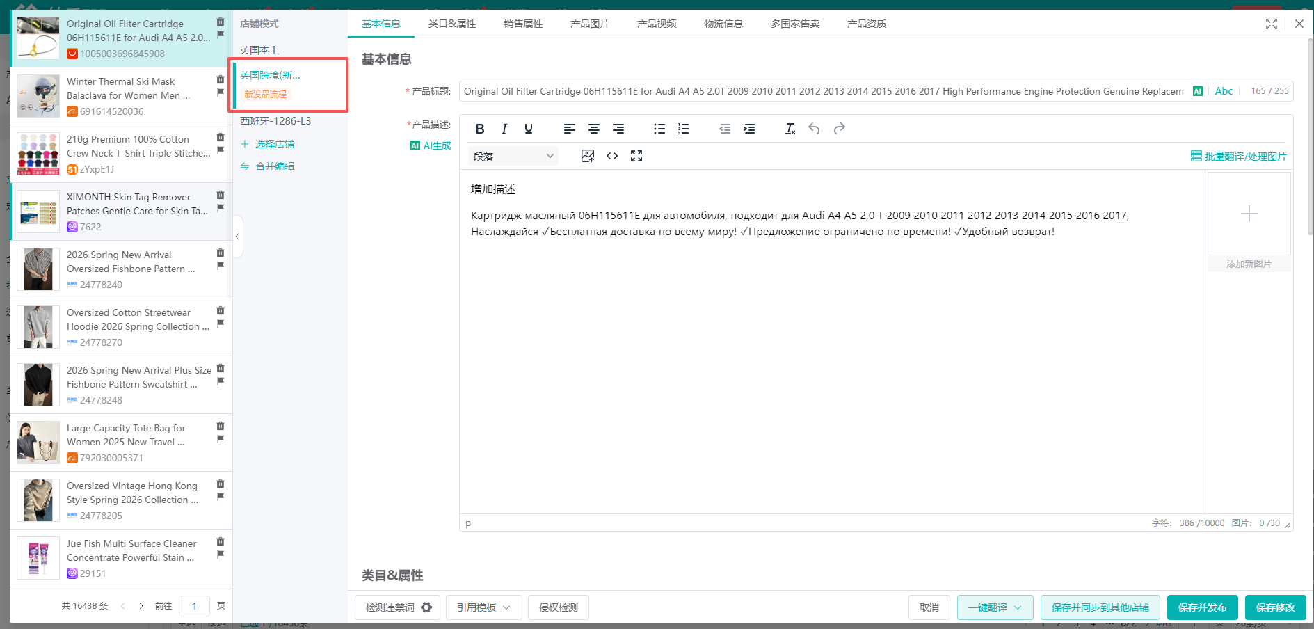 ②点击后会弹出产品编辑界面,左侧切换到新发品流程店铺