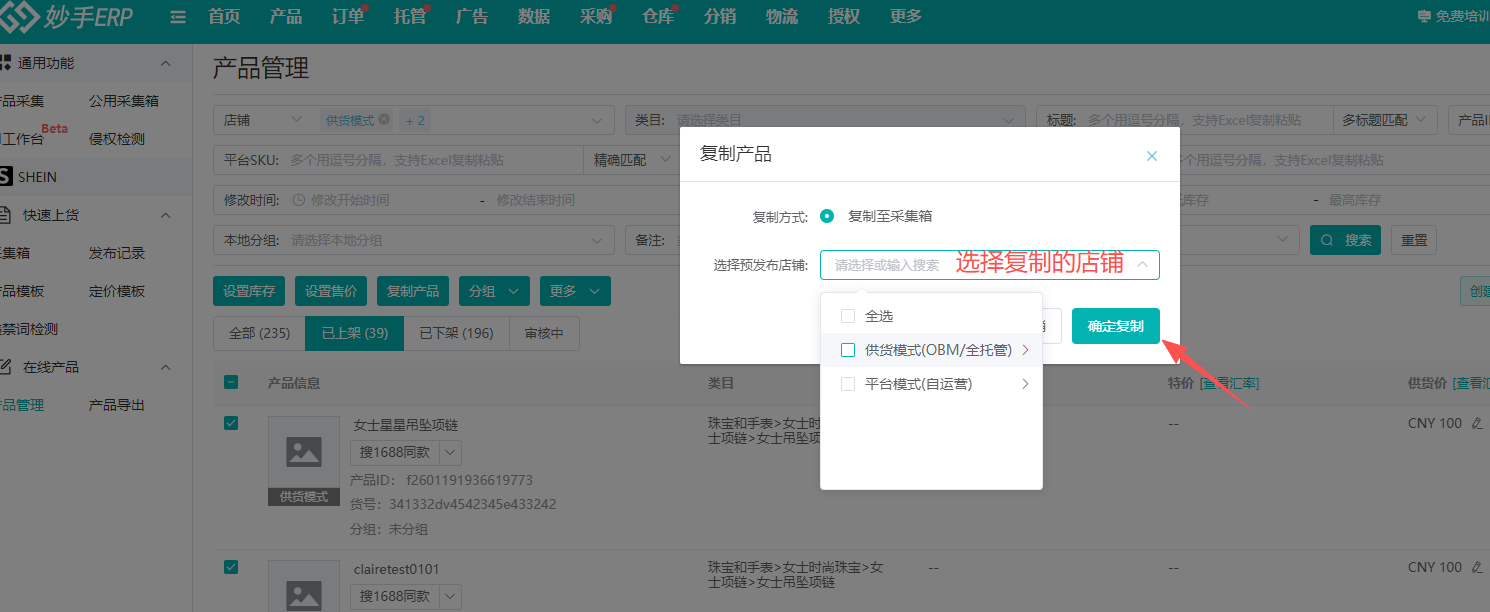 1、已发布到Shein/Shein半托管的店铺产品,可以使用妙手ERP的复制产品功能,重新发布产品,达到翻新产品的目的